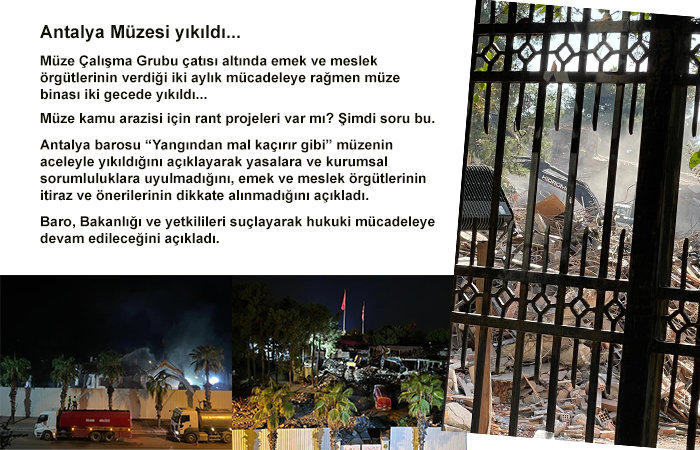 Antalya Arkeoloji müzesinin yıkılmaması için kültür insanlarının mücadelesi ve yıkım karşıtı duruşları da çok kıymetli oluyor.