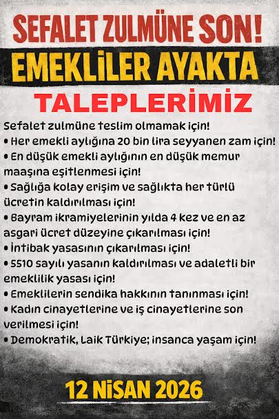 Hayat pahalılığının giderek artması ve emeklileri yaşam zorluklarıyla karşı kaşıya bırakıyor. Açlık ve yoksulluk sınırlarının altında  aylıklarla geçinmeye çalışan 16 milyonu aşkın emekli, dul yetim ve yaşlı grubu zor günlerden geçiyor. Düşük emekli aylıları, sağlık paylarının artması, sendikal örgütlenme özgürlüğünün baskılanarak engellenmesi gibi birçok konunun gündeme getirilmesi ve emekli kitlelerinin yaşadığı sorunlar için hükümetten çözüm bulunması istenecek.