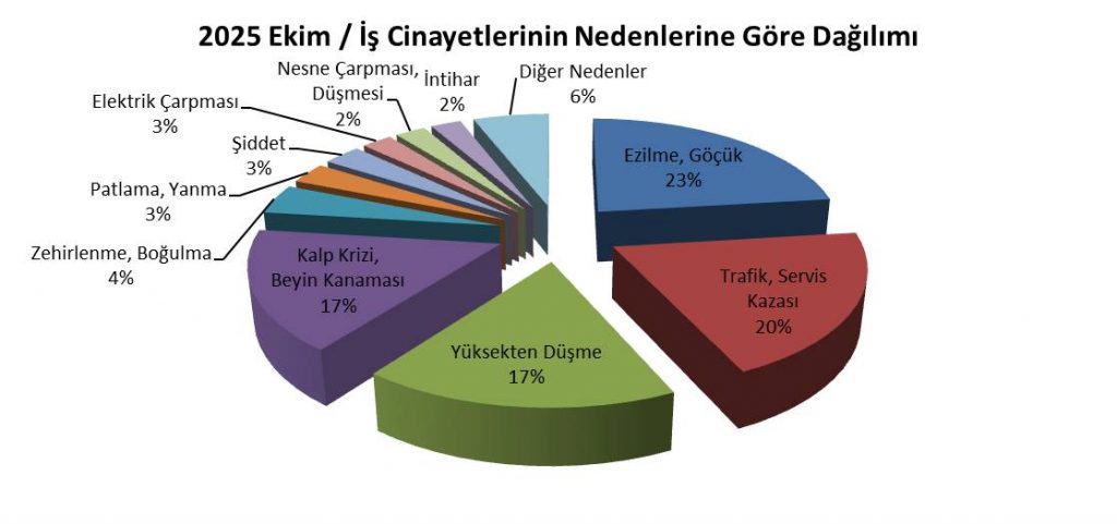 Ekim ayında iş cinayetlerinin işkollarına göre dağılımı şöyle: